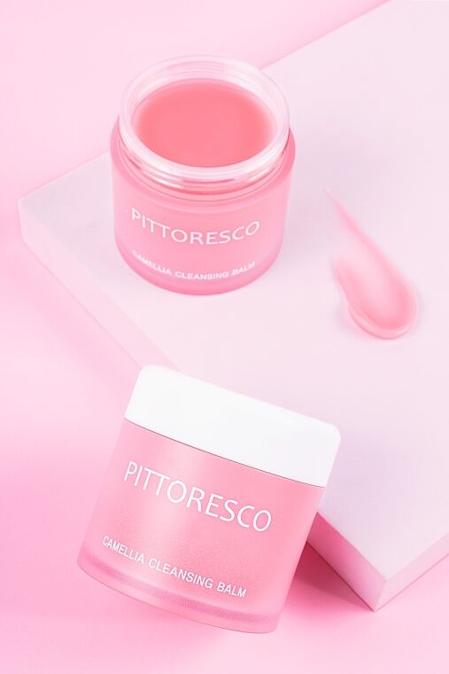 Pittoresco Camellia Cleansing Balm – kameeliamaskeeringubalm näole lahustab õrnalt ja kiiresti püsivad BB- ja CC-kreemid, päikesekaitsekreemid, huulepulgad, ripsmetuššid ja muud kosmeetikatooted ning eemaldab liigse naha rasu.